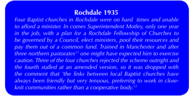 In 1935, as a seven-year-old growing up seven miles from Rochdale, Superintendent matters were not on my agenda, but little pigs have big ears and I was not too young to pick up the vibes from visiting ministers who stayed with us. Some seemed hardly aware of them, some were cautiously cooperative, and a few positively anti.